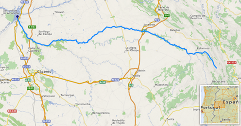 Fig. 18. Le cours de la rivière Almonte d’est en ouest, province de Badajoz. © Google Maps