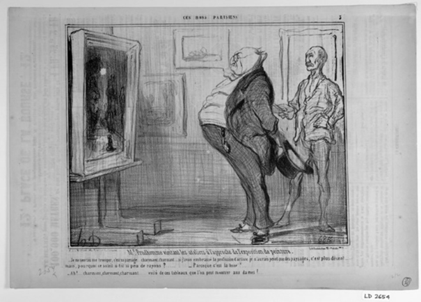 1855-1858, Le Charivari, http://parismuseescollections.paris.fr/fr/musee-carnavalet/oeuvres/mr-prudhomme-visitant-les-ateliers-a-l-approche-de-l-exposition-de-peinture#infos-principales