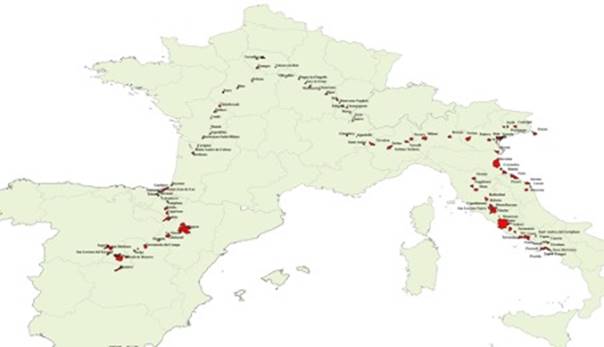 fig. 1 : Itinéraire emprunté par José Felipe Flores (selon les informations figurant dans son journal).