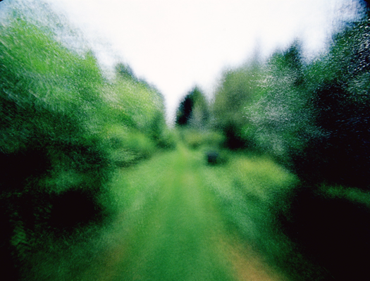 Le parcours dans cet espace se développe à travers une progression : une avancée physique vers un lieu, le lac – on part d’un point pour en atteindre un second –, et un cheminement sensoriel dans la matière du film. Cette progression esthétique prend aussi forme grâce à la sensation d’immersion très fortement présente dans le film. Le travelling avant, effectué à travers un sentier délimité de chaque bord par la végétation, ainsi que les multiples couches de plans créent une perspective marquée et omniprésente dans le film, matérialisant simultanément une immersion dans l’image. L’immersion dans la végétation est aussi rendue possible par l’ambiance du film : une ambiance végétale, décuplée par la surimpression de ces motifs végétaux. La surimpression répétitive démultiplie tout effet initial instauré dans l’image, la végétation se faisant d’autant plus dense, touffue, débordant les limites aspectuelles des éléments eux-mêmes, dans un brouillage qui nous entoure. Nous nous sentons environnés par cette végétation foisonnante et débordante. Sa densité s’affiche dans un fourmillement en mouvement discret, dans une danse subtile, lancinante, tranquille et stable, presque hypnotique, qui concourt, elle aussi, à l’immersion dans le parcours physique et dans l’image. brouillard #16 nous transmet cette végétation dans une immersion totale, dans une mise en présence directe. Cette présentation, permise par la pratique cinématographique de Larose sur le mouvement, la couleur, l’espace et la temporalité, redonne, à l’écran, les spécificités de cet environnement végétal. Ce film combine ainsi la faculté initiale du cinéma à enregistrer des phénomènes, à retranscrire des réalités – la captation représentant une étape cruciale du processus créatif de Larose –, à une traduction, par l’altération, d’une atmosphère propre à l’écosystème filmé.