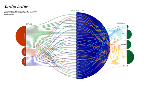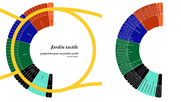 Dans le cas du Jardin tactile, les outils graphiques permettent d’aller interroger un milieu végétal, de structurer la recherche pour récolter des informations sensorielles. Ils sont utilisés pour réduire l’écart entre données rationnelles et données sensibles. L’une et l’autre ne sont plus en opposition.