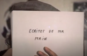 Devant la caméra de Gérard Courant, et dans un cinématon muet – comme il se doit – le cinéaste Boris Lehman dissimule son visage derrière ses textes, panneaux dans lesquels le lecteur – spectateur est invité à tomber.