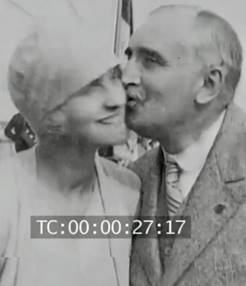 Fig. 34. Le chanteur Dranem embrassant une admiratrice. Archives Gaumont Pathé. Image arrêtée.