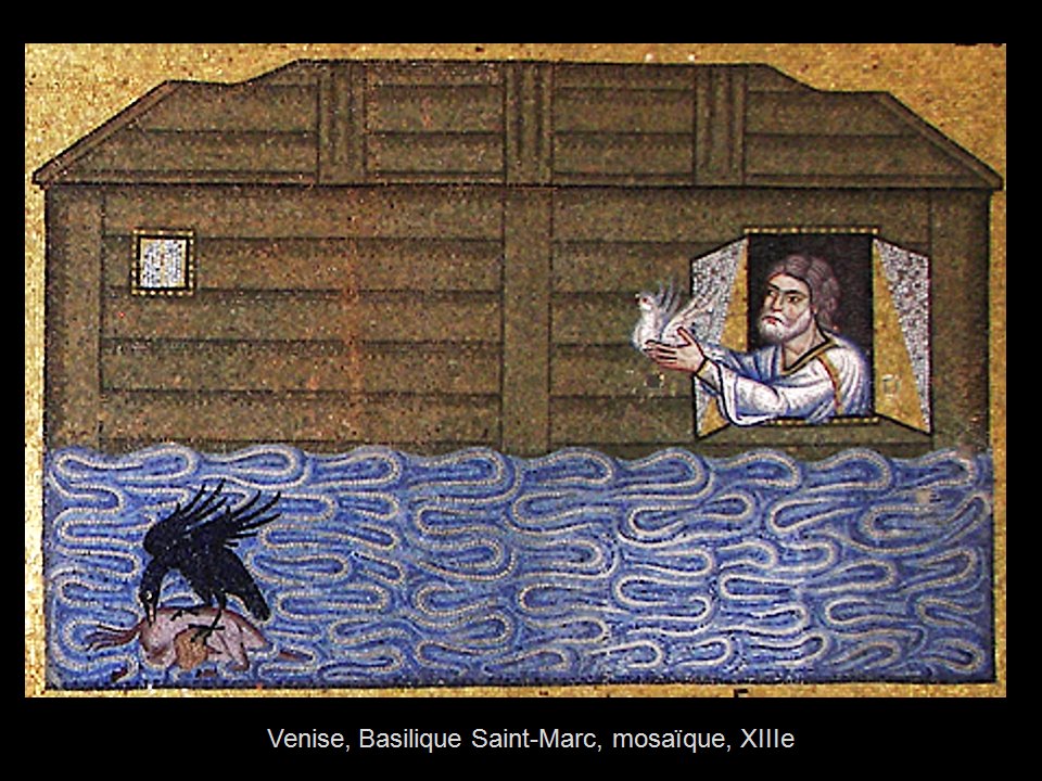Dès le premier siècle, le philosophe juif Philon d’Alexandrie s’interroge sur la signification à donner au comportement du corbeau en l’opposant à l’attitude de la colombe. De manière allégorique, le corbeau représente l’iniquité, adversaire de la lumière de justice ; il a plaisir à se retrouver dans le déluge, symbole de la corruption et de la confusion. La colombe, au contraire, est un oiseau pur qui incarne la vertu. Elle est la messagère de la bonté divine que l’homme doit accueillir avec bienveillance28.