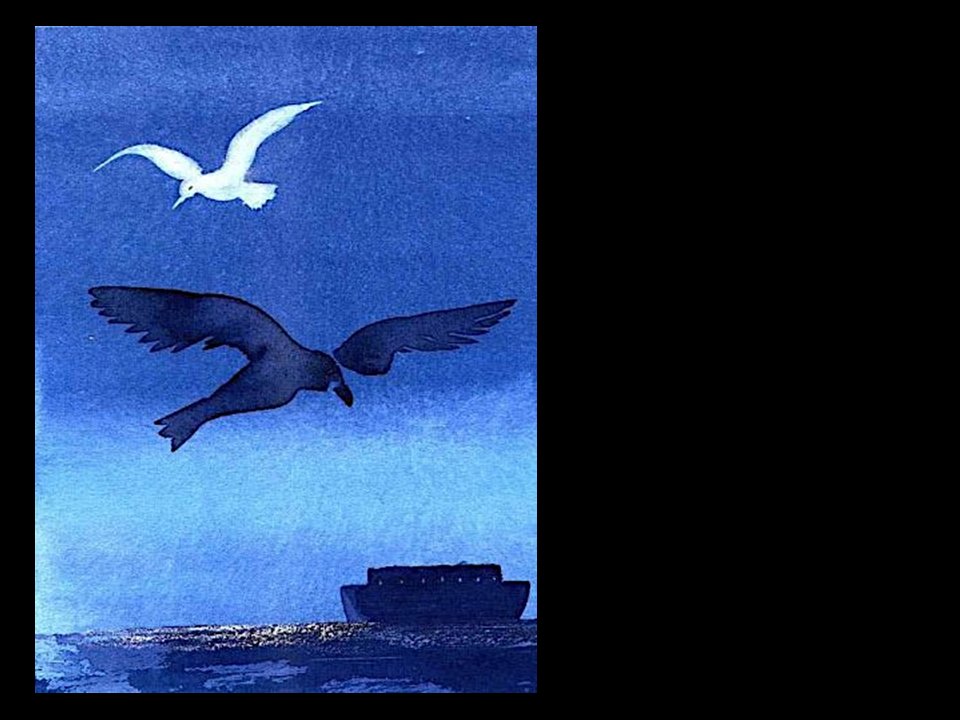 Dans les deux versions, dépité par l’attitude du corbeau, Noé envoie ensuite une colombe à trois reprises. Elle revient d’abord bredouille faute d’avoir trouvé de la nourriture ; la deuxième fois, elle apporte un rameau d’olivier dans son bec et, finalement, elle ne regagnera plus l’arche, signe que les eaux se sont définitivement retirées19.