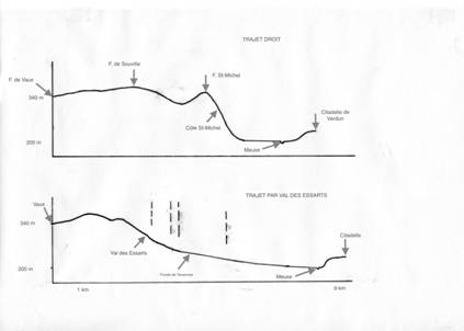 Fig. 5. Coupes topographiques Fort de Vaux – Citadelle de Verdun