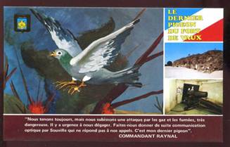 De ce fort est parti pendant la bataille de Verdun, le 4 juin 1916, le dernier pigeon voyageur du Commandant Raynal (N° 787-15) portant le message suivant :