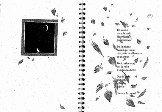 Illustration 21. Joelle Brière, Du sel dans les yeux : petits dits d’oiseaux, Éd. La Renarde Rouge, 2006 : poème et illustration p. 15