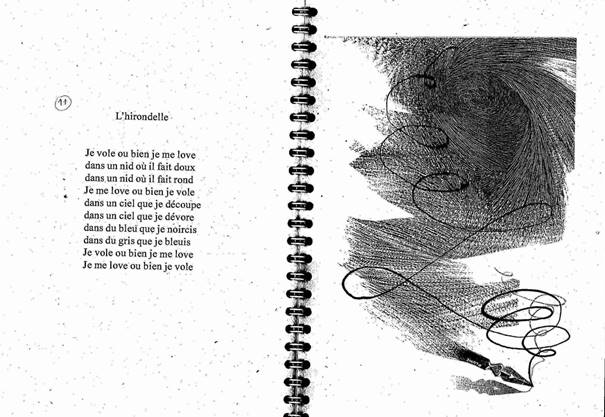 Les poèmes « L’hirondelle » (n°11) et le poème n°16, dont les premiers vers sont « Ne rosse pas / les passereaux », tous deux fondés au départ sur un jeu d’inversion ou de verlan – lover / voler – pour « l’hirondelle » rendent hommage à la liberté, la grâce de l’oiseau qui invite au voyage, à la contemplation et peut-être aussi à l’écriture poétique, comme y insiste l’illustration de V. Boiry pour « L’hirondelle ».
