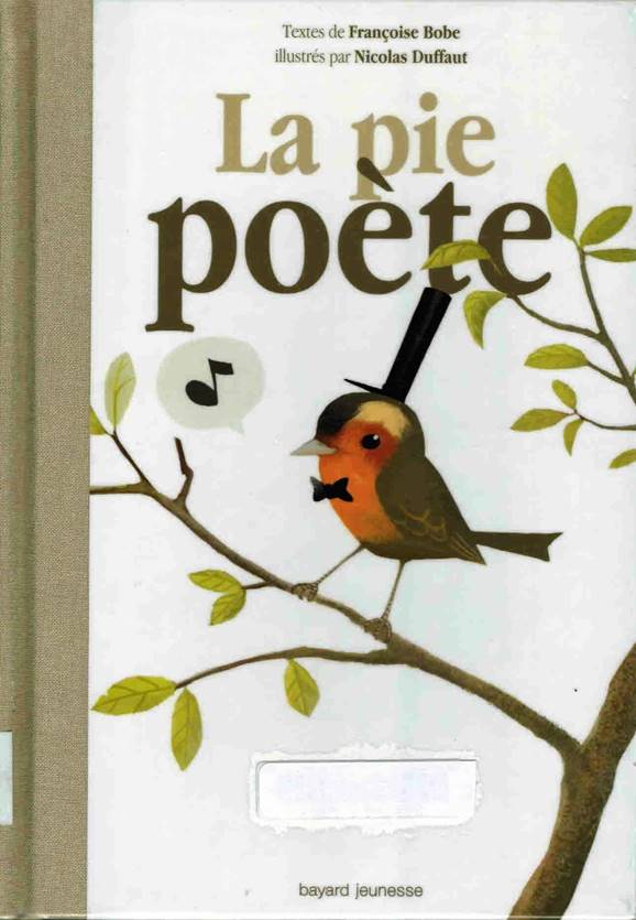 Illustration 25. Françoise Bobe, ill. Nicolas Duffaut, La pie-poète, Paris, Bayard jeunesse, 2009 : 1re de couverture