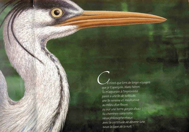 [56] Plusieurs oiseaux sont communs à cet album et à La pie-poète, comme la sittelle, le pic-vert, le héron. Une comparaison serait intéressante tant au plan des textes que des illustrations, sous l’angle de l’adaptation à l’âge du destinataire.